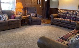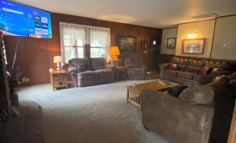 這裡有一間主屋和一間簡易小屋,可以單獨出租或組合出租。組合小屋最多可舒適地容納20位顧客。您可以輕鬆前往鄉間小路,擁有充足的停車空間和庭院。小屋周圍環繞著高大的祖父松樹,豐富的戶外娛樂設施和寬敞的門廊讓您輕鬆放鬆。小屋內部配備了所有舒適設施和額外設施,每個房間都配有私人電視。您可以享受友好的動物探訪、精彩的夜間星空表演以及寬敞的庭院。這裡是您與家人共享天倫之樂的絕佳去處。方便前往咖啡館、酒吧和當地景點。關於寵物:不允許攜帶寵物,但允許攜帶服務性動物。關於退房:上午 11:00 前退房。關於孩童:允許攜帶孩童:0-17 歲。關於入住:下午 4:00 後入住。關於吸菸:允許吸菸:在指定區域。關於最低預訂年齡:最低租賃年齡:25 歲。關於活動:允許舉辦的活動:家庭聚會、生日派對、婚禮。最多活動參加者:1 人,增加顧客來家裡需要額外付費。