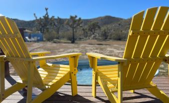 Located at the base of your own private mountain, this 4 bedroom / 3 bath home sits on 1.5 acres of stunning desert landscape and features a 10-foot cowboy pool, an 8-person hot tub, outdoor dining area complete with grill, hammock, & corn hole. There's plenty of room for the whole family or group of friends: 1 King Bed, 2 Queens, and 2 Twins offer endless possibilities for your next desert retreat. Located 15 mins to Joshua Tree National Park.