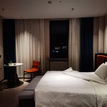 市中心的酒店睡眠不好的不要選擇靠馬路的,停車方便。服務態度很好,衞生也不錯,早餐品種蠻多的。但是標準間顯得特別擁擠,兩個箱子都放不下,住得特別壓抑。如果兩個人以上不建議選擇該酒店,我實話實説,房間實在太小了。