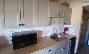 室內小廚房配有微波爐、水槽和迷你冰箱。沒有爐灶或爐灶