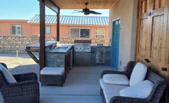 Kick back and relax in this calm, stylish space. out door kitchen with grill and cooktop. RV space with full hook ups for you or a couple of friends ,no extra charge. very nice shower and washer and dryer