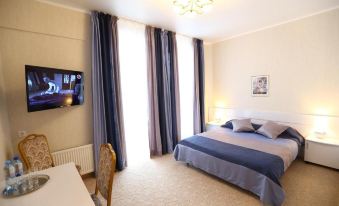 Heated room radiator method. There is a mounted TV. The bathroom is kept clean, has a Hairdryer. Bathrobes and towels are free of charge. Available options luxury. Large double beds.