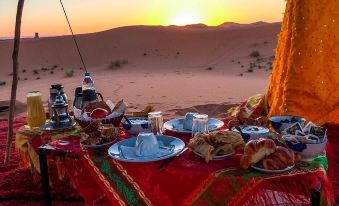 Our family traditional Camp is set a 5km from the famous village of Mhamid, staying our Camp gives you the opportunity to watch breathtaking sunsets and sunrises, lose your self in the silence and peacefulness of our charming Berber tents as well as enjoy Berber campfires with traditional music, excellent traditional diners and breakfasts. You will also have the chance to join one of our desert tours run by our team