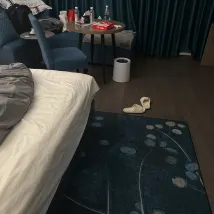房間乾淨衞生,無論是前台還是保潔服務人員的態度,都特別熱情有禮。還有機器人可以送餐送水。下圖是我住進去的樣子,剛睡起來,房間沒有打掃。