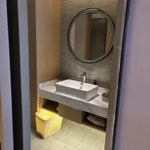 服務快速,細節方面也考慮周到,比如健身房和房間馬桶上的酒精紙巾,但是入住時問手機號,然後讓提供驗證碼,也沒説為啥,以為是入住的正常流程,後來仔細看是加會員。沒有徵詢住客。Wi-Fi手機連接後各種限制,百度都打不開。另外入住放下包上廁所,差點撞到玻璃,見圖4,全身鏡的位置看起來特別像衞生間入口
