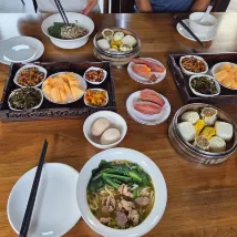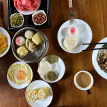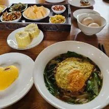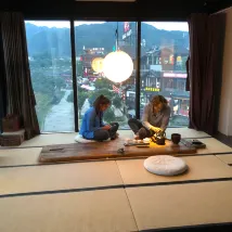 Een mooie homestay met vriendelijke behulpzame mensen (dit is een homestay dus zijn familieleden, geen personeel, maar ze hielpen uitstekend). De locatie is goed, een minuutje lopen naar de drukke straten met veel restaurants. Het zit op 5-10 minuten van het park af. Het ontbijt was heerlijk, zie foto! We werden ook netjes opgehaald en afgezet bij het treinstation. Het enige minpunt dat ik kan noemen is het uitzicht op onze kamer, dit was tegen een ander (verlaten?) gebouw aan, maar gewoon de gordijnen dicht doen ;)