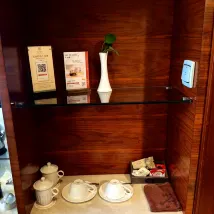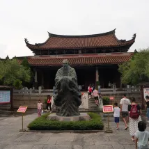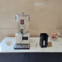 賓館離古城區還有一段距離,打車太近,步行又太遠。原定凌波樓裝修老舊,地毯臟污,要求更換了天寶樓,更換迅速,但服務人員的禮貌用語是沒有的,全程冷感。天寶樓是新裝修,窗户很大,光線充足,電吹風風力強勁好用,但房間風格浮誇廉價感,枱燈落地燈都是歪斜的,大堂衹有如圖廉價常温檸檬水和水果糖。相比剛住過的廈門賓館,同是高星園林國賓館級別,價格相近,但品質相差懸殊。另提一句漳州市內車輛完全不讓行人,助動車極多,衹有政府的少量共享自行車,出門千萬當心交通安全。