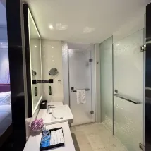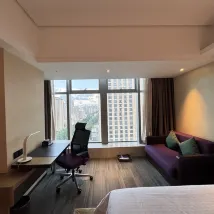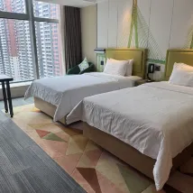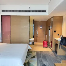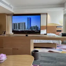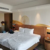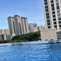 對這個酒店很滿意,首先,工作人員都很熱情,礦泉水,拖鞋有需要馬上提供,第二,還免費給我們升級了房間,房間乾淨整潔舒適寬敞安靜,所以體驗感很好。第三,早餐很豐富,工作人員很有禮貌,會説早上好。第四,設施完善,游泳池,機器人送餐,智能馬桶,都是加分項,總體,很滿意,很愉快出行。