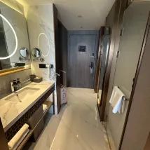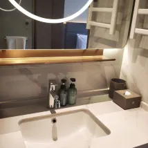 第一次住朗麗茲,本來是衝著離東站近選的,結果出乎意料的滿意,很多細節都做的很好,有加熱毛巾桿,洗臉池深度足夠,避免了洗臉時水花四濺,最讓我驚喜的是居然洗漱台上有小垃圾桶,這跟我在家裡的習慣一模一樣,非常方便。烘乾機效率很高,烘的又快又好,早餐也不錯,而且小朋友直接去,沒有讓買半價餐券。前台還有準備便攜牙線,房間裏飲用水隨時都很充足,走的時候前台還主動詢問要不要帶瓶水。離雪王總部也很近,步行過去打卡很方便。總之,很好,如果備有小香皂就更好了。如果有機會再去鄭州還是會選擇她家。
