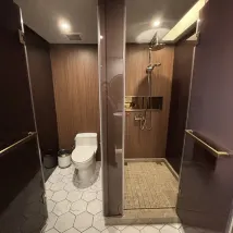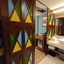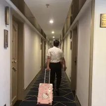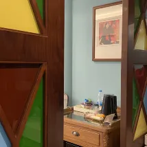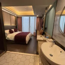房間很有設計感,吧枱是同價位酒店裡的王者,不止有帶託盤的咖啡杯還有小冰箱,甚至還有附贈的點心和汽水,房間裏還有體重計,浴袍也是植絨的,很舒服。位置絕佳,斜對面就是711,出門左轉就能爬個小山看風景。服務非常周到熱情。