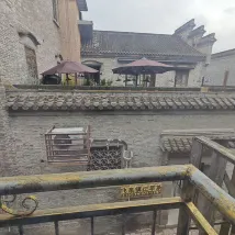 晚上挺安靜的 就在古鎮上 吃東西也很方便 轉個彎都是餐廳 味道且都不錯呢 房間二樓服務生會幫忙拿上拿下 還有個小露台 可以通風 大廳很有特色 以後來還會再住的