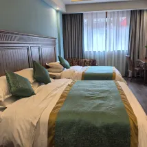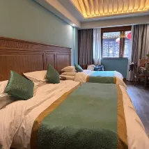 首先酒店位置在景區西入口,遊玩非常方便!然後酒店的服務人員都很熱情、服務態度非常好,這點必須贊!酒店大堂挺乾淨的,但房間入住體驗就一言難盡了,衞生狀況堪憂,定的loft房型,一進房間就有一股異味,可能衹有天窗沒有其他窗户通風的原因,榻榻米床頭逢的灰肉眼可見,房間牆布和淋浴間牆體有明顯黴點和污漬,空調出風口的灰怕不是幾年沒清理過了吧,另外被子潮潮的,不乾爽,然後房間的隔音非常差,大清早就是叮叮咚咚的關門聲和説話聲,總之除了位置和對服務人員滿意,整體房間品質嚴重對不起這個價格。