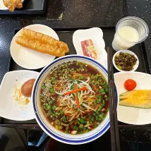 房間很大,酒店早餐是樓下麪館的一份套餐,份量很大,工作人員服務都非常好,酒店位置就在西津渡裏,距離永安魚莊和茶顏悦色都非常近。