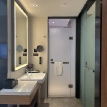 房間大,設施有質感,視野好,衞生乾淨,周圍吃飯也很方便,前台小哥還給幫忙搬行李,就是房間有個雙人位的沙發能喝茶就好了,那個轉椅和桌子不是商務人士基本沒有用。