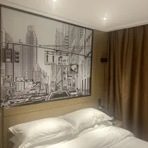 房間設施:全部簡約而不簡單! 床上用品:整潔且衞生!床墊軟硬適中! 網絡電視:網絡比較流暢,電視效果也行! 衞生間:整體格局還行,就是稍微小了點。 價格:便宜,物超所值! 總結:體驗非常棒,值得推薦!