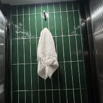尊敬的客人您好,首先感謝您選擇入住我們酒店,您反應的洗澡間掛着一條毛巾,這個讓您誤會了,那是一條地巾,所有這個風格的房間,地巾都是掛在那個位置,並不是阿姨沒有認真打掃。洗手間的門我們也安排工程師檢查了,那個卡鎖裝置有一點緊,需要您稍稍用力。針對您提出的意見我們會加強員工培訓,希望下次我們員工能用殷勤服務能讓您滿意。我們會繼續努力。期待您的下次光臨!