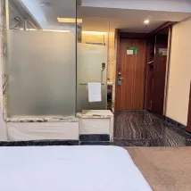 建議酒店對房間內進行大面積消毒殺菌,我和對象住了後身上都長這個紅色小疹子,現實看會更加紅而且密集,我就腿上有,對象胳膊上,腿上連身上都長了,一洗澡接觸到熱水就很疼。完全不是訛人也沒找過酒店要一點賠償,純純建議做好消毒。