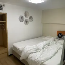 今次一行10人入住。在 Trip. com搜尋這𥚃有4 房兩客廳,可住12人,但網站沒有說明是兩單位,客人就當是同一單位,因為列明有房間4,到步後發現跟本是兩個單位,不同房號。為何不在網站說明❓還說有4房間❓同類型公寓都有說明是分開單位,如果是分開,那用付比較貴的房價訂這𥚃? 同類型公寓,附近有很多選擇,就是以為這𥚃有4房間同一單位,才訂了,這間是同類型最貴的一間公寓,說可住12人,實在有誤導,還列有房間4,收據還寫6居室,3套房,1單位,簡直欺騙!實是每單位住6人,只有一個洗手間,沒有套房,失望。每個房間衣柜內都沒有衣架,要自行在客廳取用。房間比想像中狹窄。 服務亦說不上十分好,行貨罷了住公寓式,對服務亦不會計較和要求!公寓走廊有異味,感覺衞生情況一般。 跟本這公寓最大只有住6人的單位,但又收取高昂費用,內容不實,欺騙! 整體是失望。