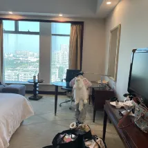這次訂了兩間房,這間房是有問題的,櫃子裏沒有小冰箱,牆上缺了裝飾畫,寫字枱居然在詭異地滴水,考慮到酒店滿房,將就一晚問題不大。酒店價格方面確實很實在,自助早晚和晚餐很豐盛,性價比很高,服務方面也還不錯。