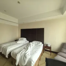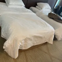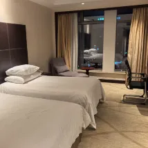 第一次遇到空調不能調温的酒店,最低衹能26℃,還好被子是薄被子,還有吃個早飯也能熱**,偌大個酒店空調就那麼差嗎?設施中規中矩,衞生間很大,但淋浴間很小,還搞個雞肋浴缸,傢俱有點陳舊,但是衞生做的還是挺好的,布草材質很舒服,但是是不是有點節約了,都破了😒
