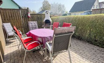 2-family house. On the outskirts, 1.3 km from the centre of Zinnowitz, 1.5 km from the sea, 1.5 km from the beach. In the house: storage room for bicycles, central heating system. Parking on the premises. Supermarket 550 m, restaurant 1.3 km, bakery 1.3 km, café 1.3 km, bus stop 400 m, railway station 900 m, sandy beach 1.5 km, thermal baths "Bernsteintherme" 1.1 km. Marina 2.2 km, golf course (18 hole) 25 km, surf school 1.1 km, tennis 1.4 km, minigolf 1.1 km. "Sandbank", 4-room apartment 97 m2 on 2 levels on 1st floor. Cosy furnishings: living room with sloping ceilings with cable TV (flat screen), radio. 1 room with sloping ceilings with 1 double bed. Open kitchen (oven, dishwasher, 4 ceramic glass hob hotplates, toaster, kettle, microwave, electric coffee machine) with dining table. 2 showers/WC. Top floor: (steep stair), 1 room with sloping ceilings with 1 double bed and cable TV (flat screen). 1 room with sloping ceilings with 2 beds. Heating. Patio. Terrace furniture, barbecue (portable). Facilities: children's high chair, baby cot. Parking (2 cars) at the house. Please note: non-smokers only. Smoke alarm.