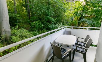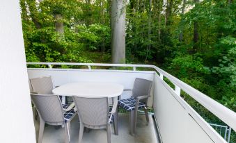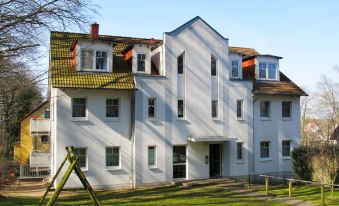Apartment block, 2 storeys. On the outskirts, 800 m from the centre of Zinnowitz, 950 m from the sea, 950 m from the beach. In the house: central heating system. Parking on the premises. Supermarket, restaurant 600 m, bakery, café 750 m, bus stop 1 km, railway station 1 km, sandy beach 950 m, thermal baths "Bernsteintherme" 1.5 km. Marina 1.4 km, golf course (18 hole) 25 km, surf school 1.1 km, tennis 550 m, minigolf 1.1 km. "Anna", 3-room apartment 65 m2, on the upper ground floor. Cosy furnishings: living/dining room with cable TV (flat screen), radio. Exit to the balcony. 1 room with 1 double bed. 1 small room with 1 double sofabed (140 cm, length 190 cm). Kitchenette (dishwasher, 4 ceramic glass hob hotplates, toaster, kettle, electric coffee machine). Shower/WC. Balcony. Balcony furniture. Facilities: children's high chair, baby cot. Parking (1 car). Please note: non-smokers only. Maximum 1 pet/ dog allowed. Smoke alarm. DE44889