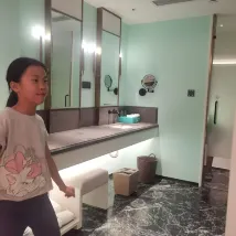 設施:房間寬敞明亮,帶小朋友去可以住子母房,很舒服。 衞生:乾淨簡潔 環境:客廳竟然可以看到湖景,相當愜意 服務:前台小姐姐服務很熱心,周到。6樓的天際泳池,還在消毒,沒開放,有點小遺憾。