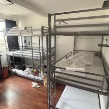 床很大,不過沒有冷氣,有地方曬衣服,冲涼房有手拉花灑熱水充足而且喜歡有一個浴室很大,有充足地方放衣服,有廚房可以煑食,交通算方便,出入不需咭只用蜜碼就可以,幾方便,不需擔心不見咭,但是WiFi就很弱,不穩定性