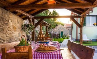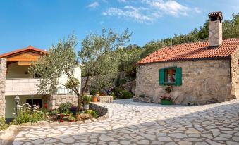 Next to the new villa, the perfectly renovated, dalmatian style, stone house is located.