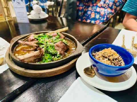 一坐下桌子上的勺子讓我 大吃一驚。一星怎來的?後來服務員馬上給我換了勺子。我們叫了豬扒來的是蜜汁排骨。其他的都還好。價格不算貴。叫這幾樣 3366 泰銖。冬蔭湯 味道確實不錯。沒有外面的 隨便小店那麼甜。喝下去的味道可以用質感來形容。鵝肝 肥而不膩。咖哩是偏日本風格的咖哩。不像在 別的泰國小店 吃的是偏印度。米飯 香軟。順口。還有就是這個 app的菜單 的菜不是每一個 普吉鎮的 店 都有。有的 是沒有的。⋯⋯⋯
