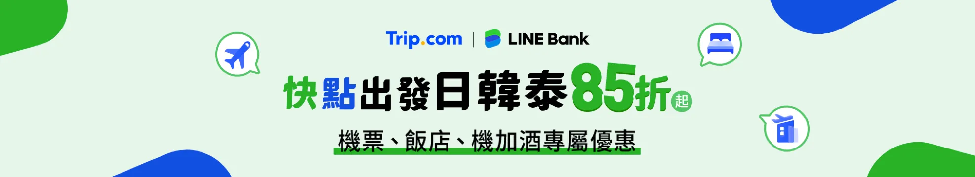5. 如何領取並使用優惠代碼:用戶可在每週三於LINE Bank x Trip.com 專屬活動頁領取優惠代碼。優惠代碼名額分期開放使用,發送日期從2026年3月7日至2026年9月30日之間的每週三。當日活動開始後,用戶需使用活動頁上展示的優惠代碼,按照活動要求支付訂單並使用優惠代碼才可享受優惠。本活動的優惠代碼使用規則,可參閱 Trip.com App 內我的帳戶-優惠代碼內的詳情。請注意:若支付該筆訂單時優惠名額已用盡,則無法享受優惠。請及時下單並使用優惠代碼。