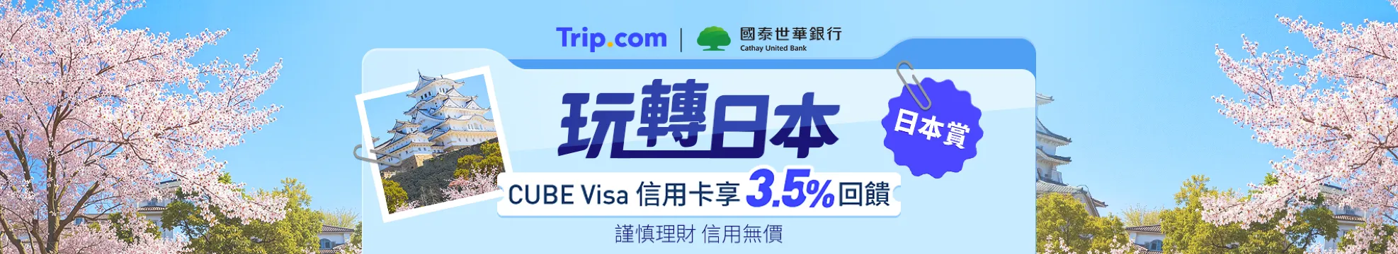 【逢5國泰世華優惠】CUBE Visa 卡日本賞
