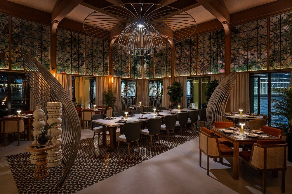 在杜拜噴泉旁的 Thiptara 餐廳品嚐精緻泰式皇家料理。在星空下露天用餐,欣賞噴泉表演的絕佳視野,是浪漫夜晚或特別慶典的理想選擇。