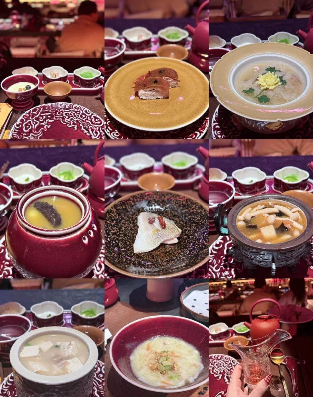 儀式感滿滿的唐宮御宴,邊用餐邊看節目,餐前淨手、仙女倒果酒、倒茶;感覺像在盛唐的皇宮用餐似的,每道菜餚用不一樣的器皿來盛裝,都是洛陽特色菜,精緻又好吃