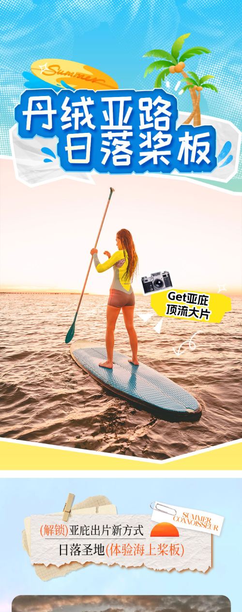 在丹絨亞路海灘體驗槳板探險,邊划邊賞日落,金色霞光灑滿海面,隨手一拍就是大片,浪漫又刺激