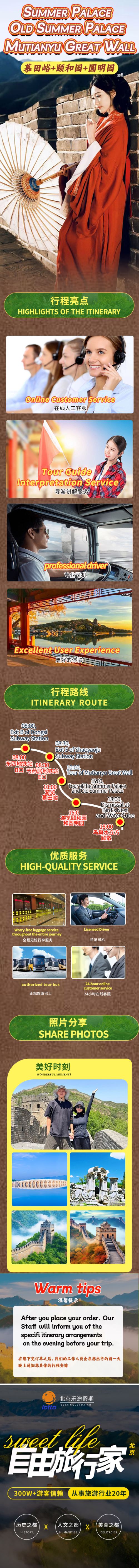 北京慕田峪長城+頤和園+圓明園一日遊【可選中英文/獨立團】
