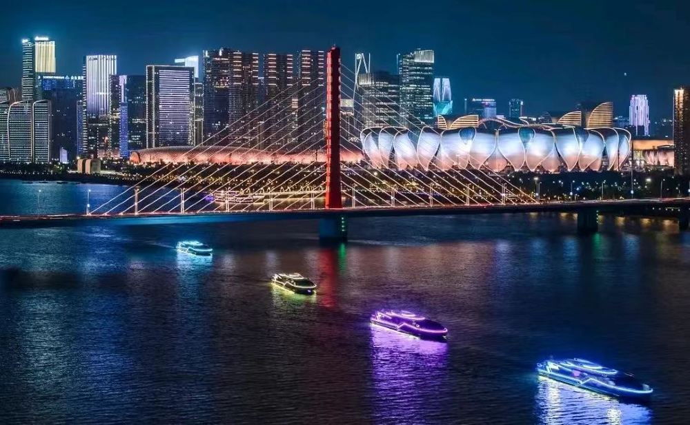 *浙江第一碼頭—復興大橋—打卡錢王射潮、錢江龍(杭州印)—西興大橋—邂逅奧體中心「大小蓮花」與杭州之門—城市陽台—國際博覽中心—彭埠大橋—返回浙江第一碼頭,一路盡覽錢塘江兩岸璀璨夜景(全程約 70 分鐘)