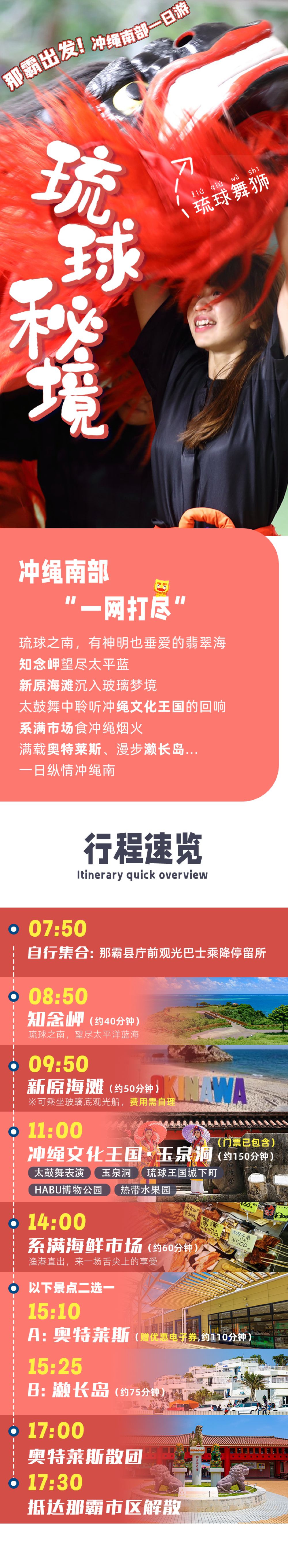 日本沖繩南部知念岬新原沙灘玉泉洞瀨長島中文拼團一日遊