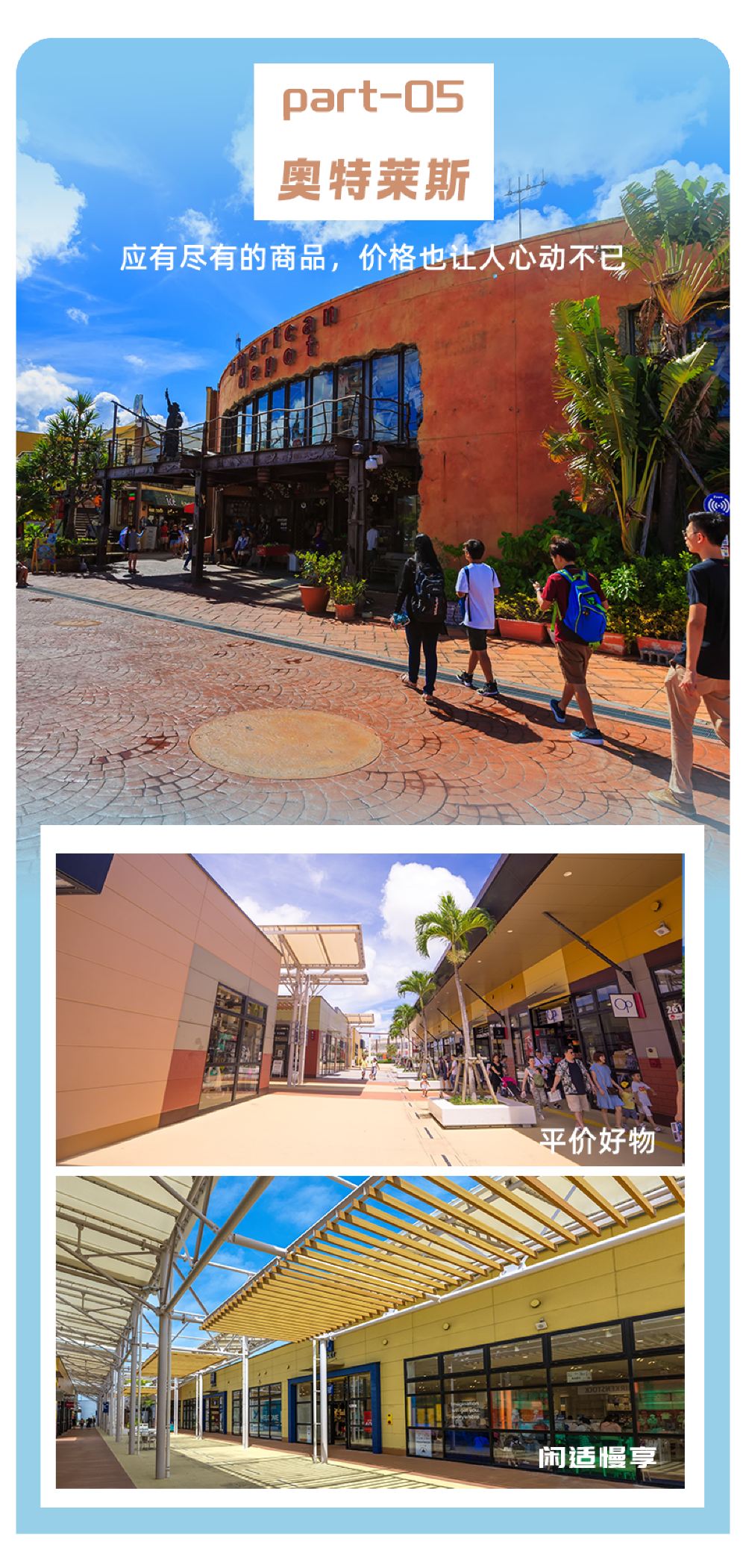 【多景點可選】沖繩奧特萊斯購物天堂/歐式風情小鎮瀨長島,景點二選一,滿足多樣需求。