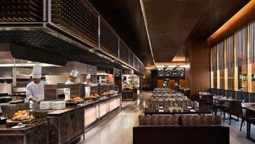 澳門 JW 萬豪酒店自助餐—「名廚都匯」以全自助餐形式薈萃環球美饌,為賓客呈獻豐富多樣的盛宴,更獲選為 2019 澳門最佳多國菜。室內裝潢簡約時尚,又不失雅緻大體。廚房採用大片玻璃為設計,主菜都即叫即做,讓賓客能安坐在恬靜寫意的用餐環境中,一邊欣賞烹調過程,一邊品味新鮮食材。