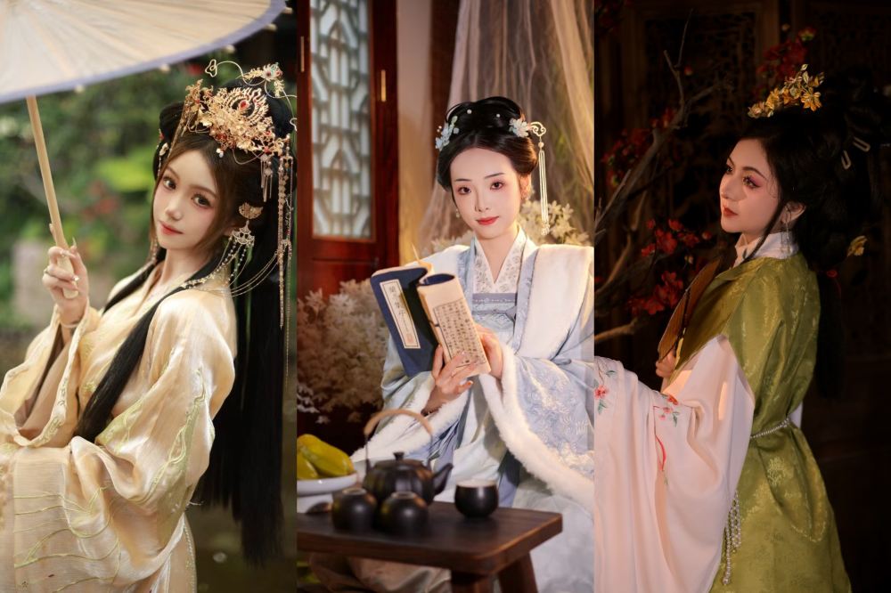 - 或是靈動的雙環髻配珠花,或是溫婉的垂掛髻簪步搖,再輔以團扇、髮帶、玉佩等精緻配飾,讓你從「衣」到「形」,全方位變身古代佳人或公子