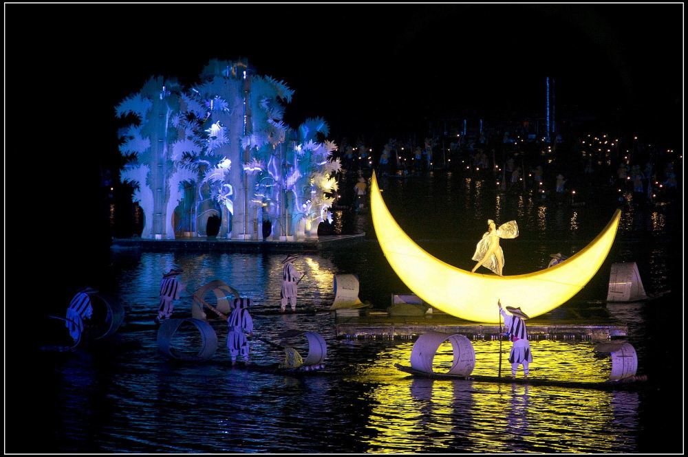 《印象劉三姐》是一場享譽盛名的戶外演出,以廣西陽朔漓江的壯麗景色為背景。這場非凡的表演通過傳統民歌、舞蹈與當地自然美景的精彩呈現,生動演繹了該地區民間傳說中著名人物劉三姐的故事。演出充分展現了當地民族文化特色,並以全球最大型戶外實景演出之一而聞名。