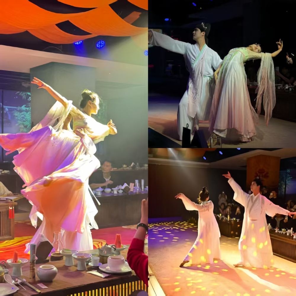 *【領略盛唐風華】餐間表演串聯《霓裳羽衣》舞、李白斗酒等經典場景,從唐宮樂舞到文人雅集,每個節目都是一段盛唐傳奇