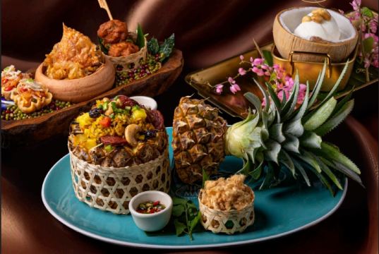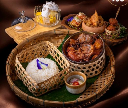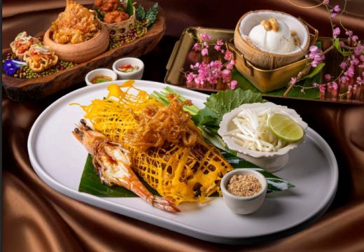 走進一處每個角落都在訴說故事的用餐空間。從水晶吊燈映照的餐桌、手工泰式甜點攤位,到纏繞鮮豔繩索的天花板橫樑——Thai Marché 巧妙融合設計巧思、傳統元素與現代風尚,打造出精心策劃的視覺饗宴。
