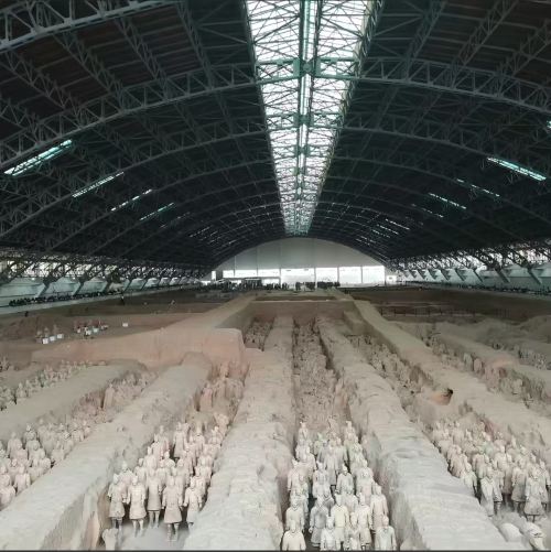▲ 兵馬俑坑核心:軍陣與細節密碼 1 號坑(主力軍陣):導覽前鋒、主力、側翼的佈局邏輯,點出俑的髮髻朝向、鎧甲甲片數量與軍階的關聯; 2 號坑(精銳部隊):解析弩兵、騎兵、車兵的協同戰術,揭秘跪射俑「重心穩、保存完整」的原因; 3 號坑(指揮中心):說明「無主帥俑」的爭議與考古推測,關聯秦軍指揮體系。