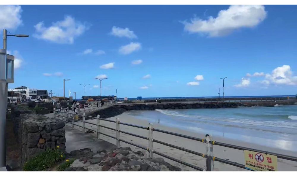 ▲ 月汀裡海邊以清澈如翡翠的海水和潔白沙灘聞名,是濟州治癒感的海邊之一。