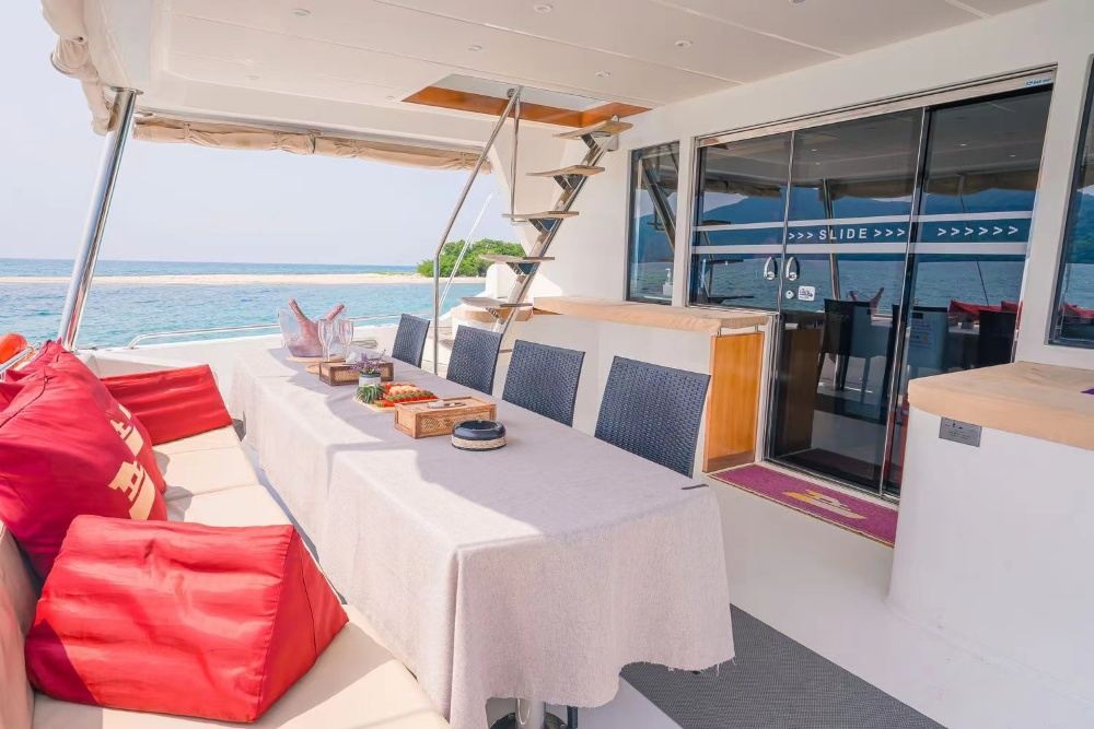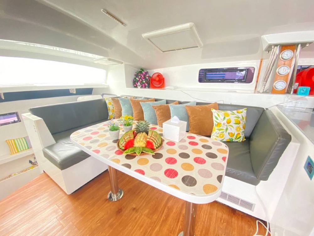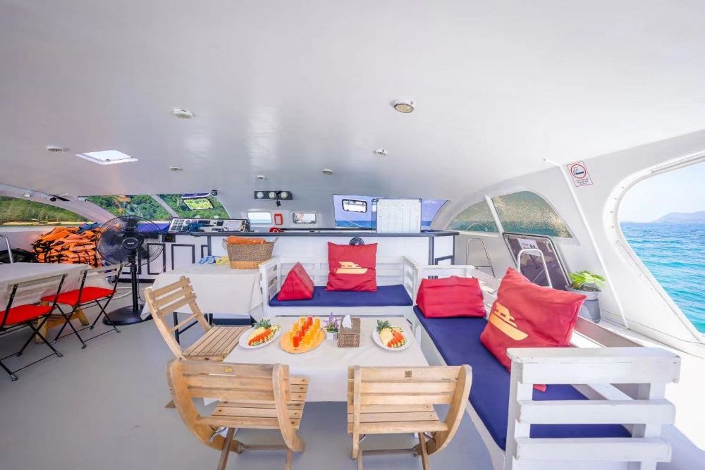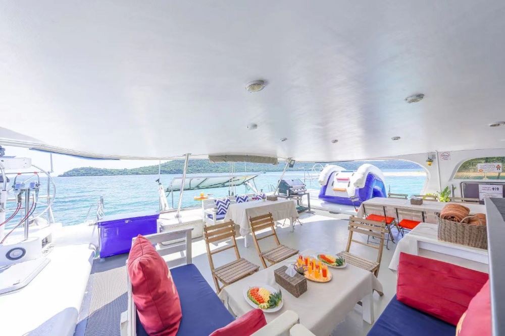 服務內容包含:泰國船長、泰國船員、礦泉水、軟飲、冰塊、新鮮時令水果、橡皮艇、浮潛面具、海釣設備、餐具、調味料