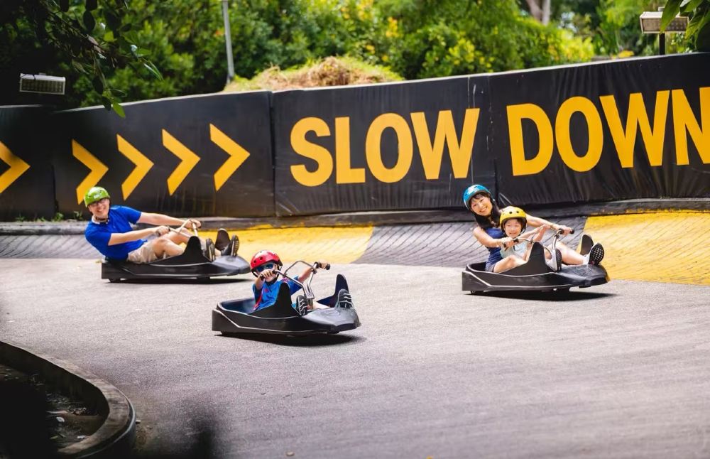 ▲ 天際線斜坡滑車:4條曲線賽道可自主控制速度,搭配高空吊椅回程,俯瞰聖淘沙島景與城市天際線,趣味與景觀兼具,適合全年齡段體驗。
