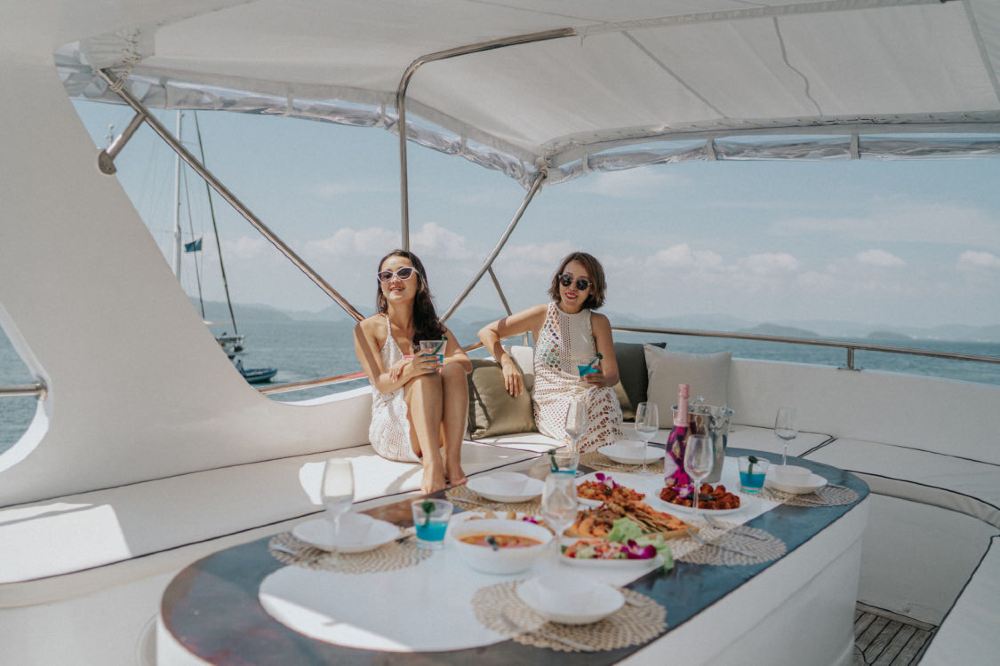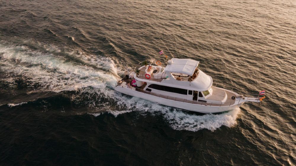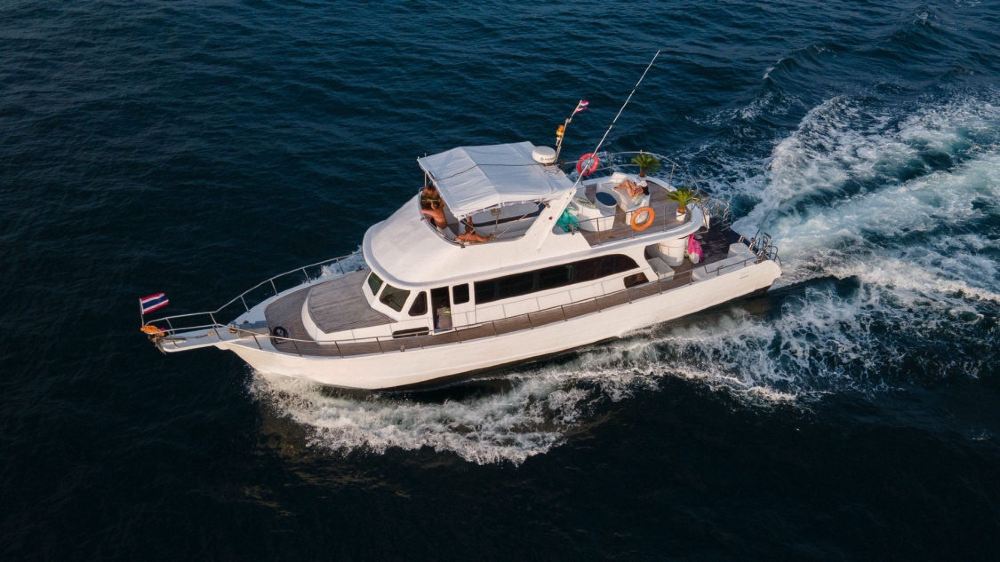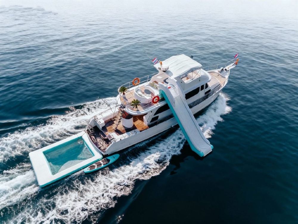 普吉島遊艇包船出海55英尺的泰式遊艇「賽娜號」,是您暢遊普吉的移動樂園。船上備有繽紛水果飲料,更配有刺激海上滑梯,邀您縱情躍入蔚藍安達曼海,盡享清涼與歡樂。