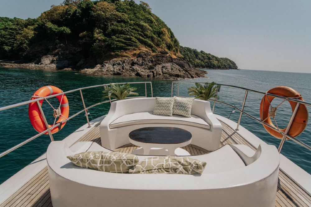 【泰國普吉島遊艇包船出海】普吉島出海玩樂55尺賽娜號泰式遊艇包船出海海釣+享水果飲料與海上滑梯樂趣
